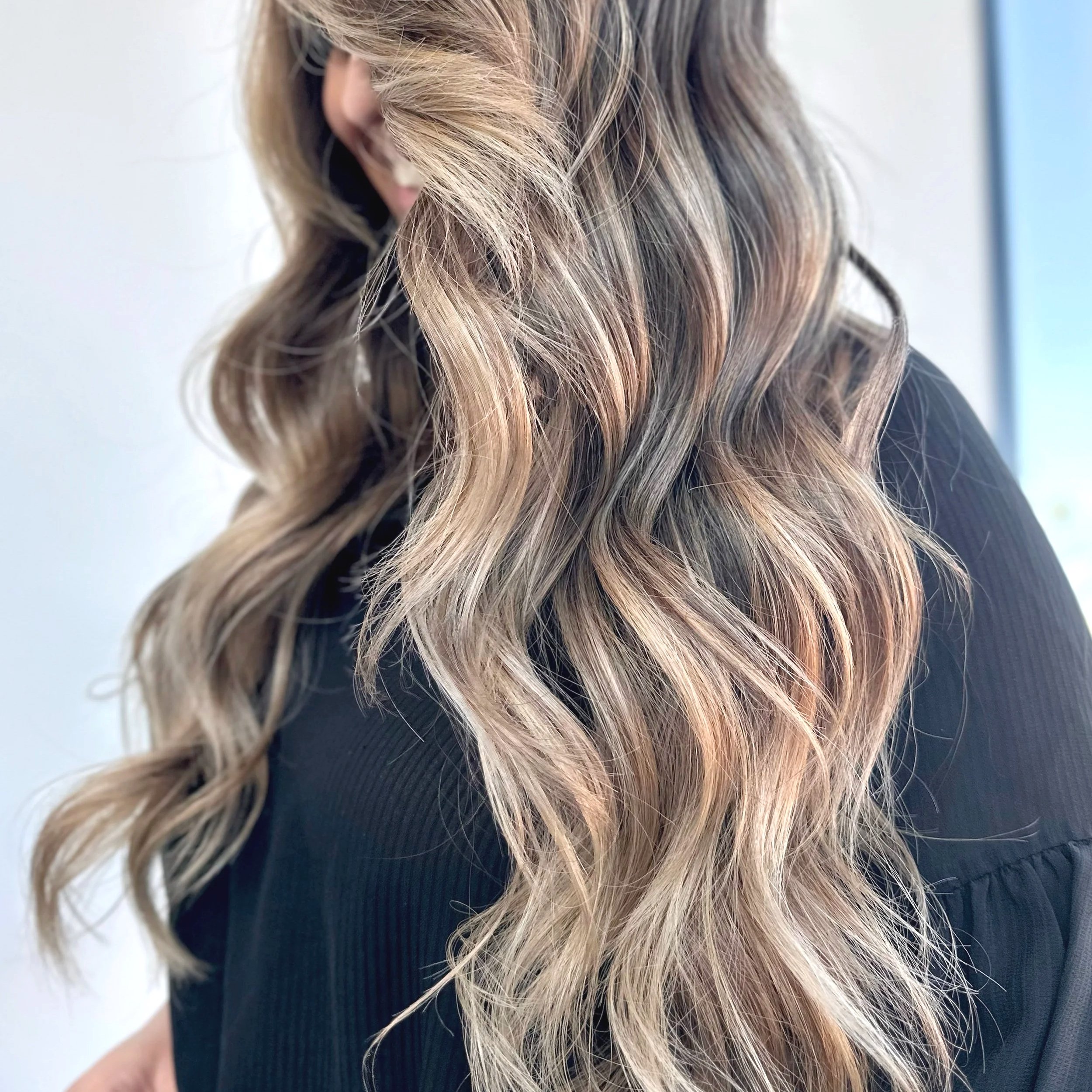A full head of customized highlights and/or lowlights based on client’s current canvas and desired end results. Techniques used vary by the client and end result, and highlights can be toned to various hues, such as blonde, brunette, or red.